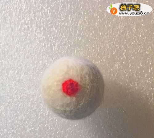 先用白色填充羊毛戳成一个球形,大小随自己定,并且包上白色优质羊毛继续戳紧实