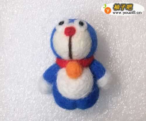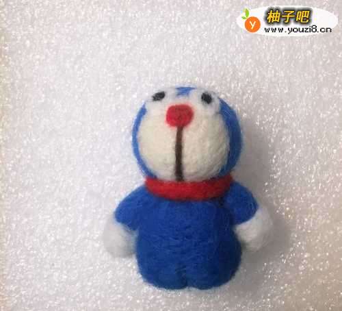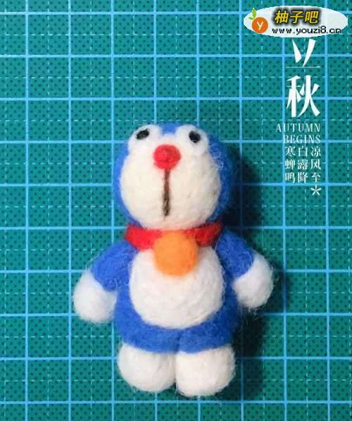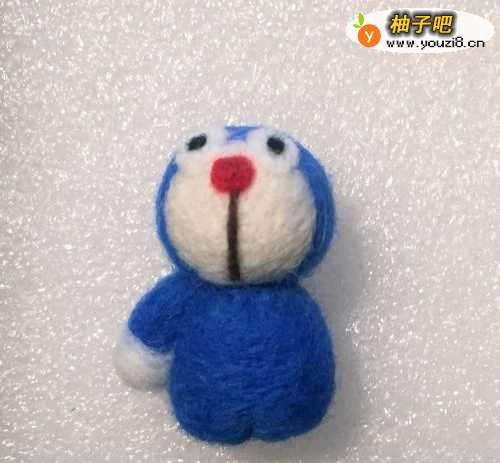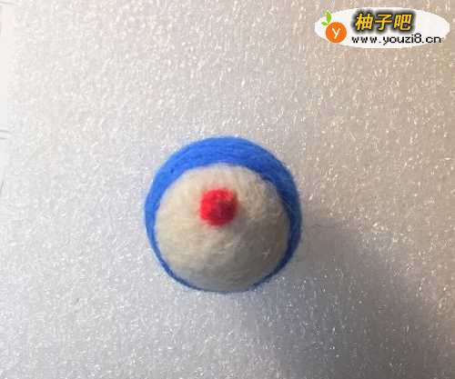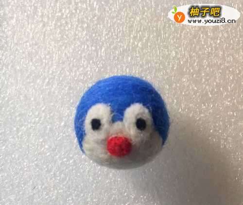2先用红色球球羊毛确认叮当猫的鼻子,有个参照比较方便运作