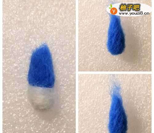 7继续戳出两只胳膊,并且如左图所示,用白色羊毛戳出手的部分