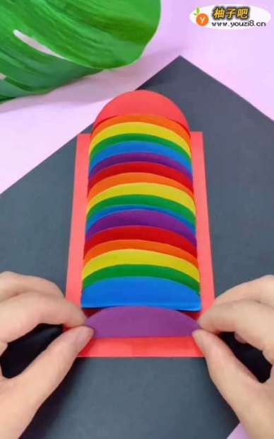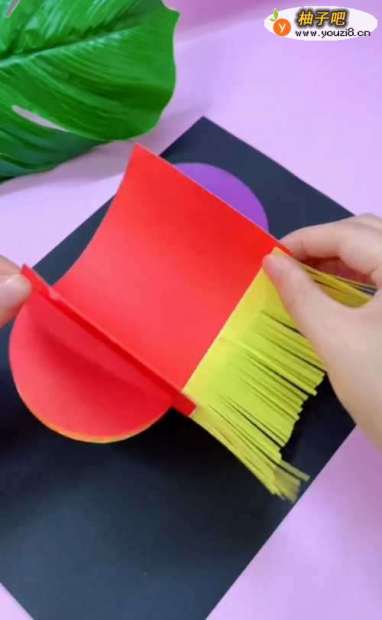 6将彩纸围起来粘好;