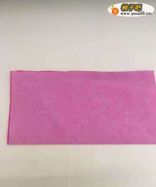 第一步 把一张16厘米X16厘米的正方形二红色彩纸 从下向上对边折叠整齐