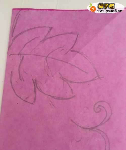 2第二步 折叠完之后竖起来 双边在左 拿起绘图铅笔 先画上葡萄的一片大叶子 和它的须子