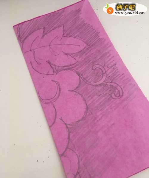 4第四步 葡萄和叶子都画完之后 再用绘图铅笔把需要剪去的部分涂实一下 方便裁剪