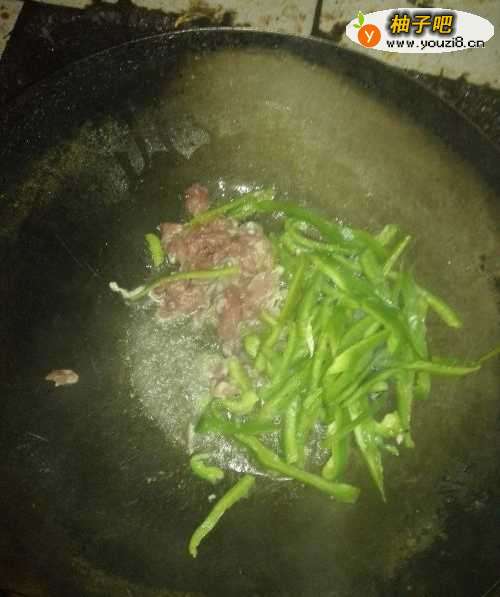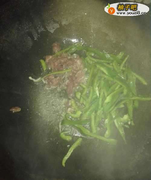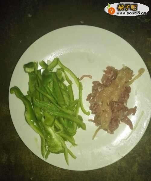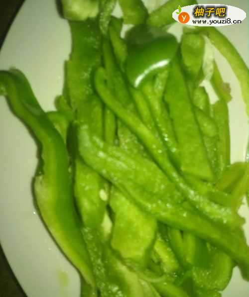 3将青椒,去根,去籽,切成条。葱洗净切沫。