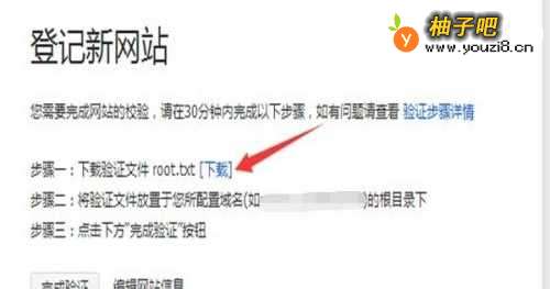 7下载【root.txt】,用FPT上传到网站的根目录,之后点击“完成验证”,这个是要看网站是不是你的