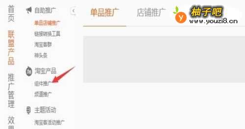 2进入后台点击“联盟产品”,再点击“组件推广”这样就进入淘点金的区域了