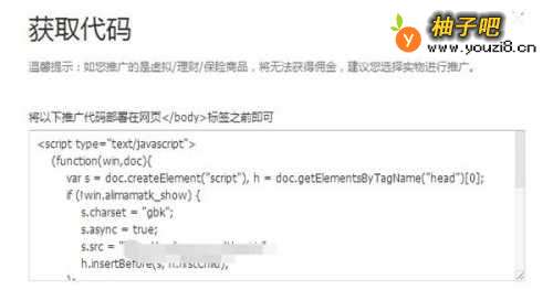 8验证完成了就能配置推广单元了,投放网站就选你刚验证的,也能是以前就有的,推广位啥的自己看着写吧,点击“确认”就得到了推广单元的代码了,这个是要布置在网站底部的,很要害,没有他你在网站布置标签也没用,下面就是标签的获取了