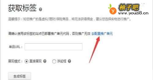 4为了代码能在网站展示,我们要先配置下推广单元,点击“去配置推广单元”