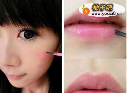 接着配置粉色的唇彩,涂抹双唇,滋润的同时能改善双唇颜色,显得更娇俏可爱。