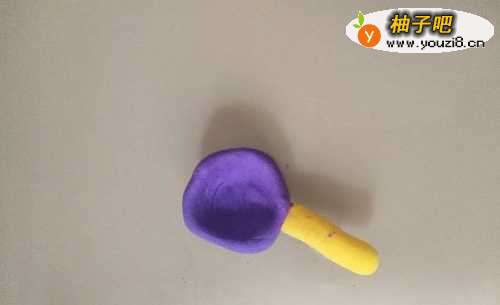 用紫色的橡皮泥搓成圆形。见下图