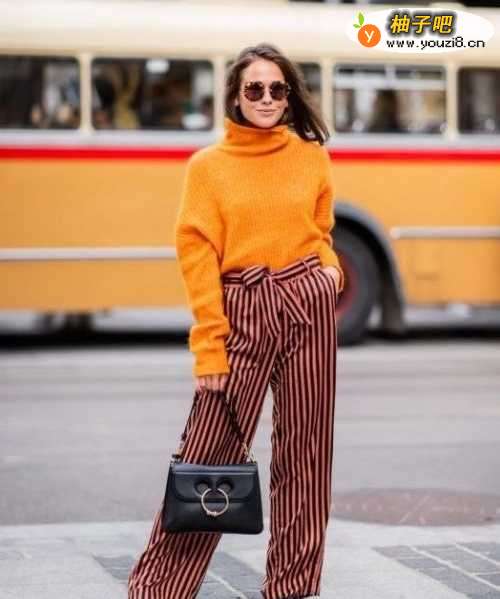 搭配三:橘色印花毛衣+米白色阔腿裤这款橘色印花毛衣是充满复古感的一款装扮,版型属于比较宽松的,下身搭配一条仙气十足的米白色阔腿裤,整体搭配出来很显干净又特别洋气。