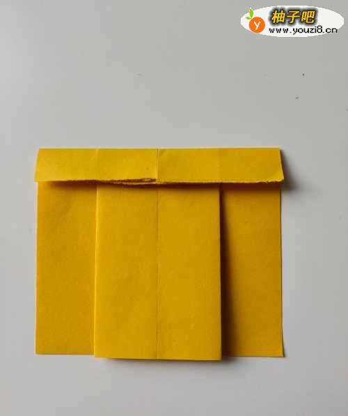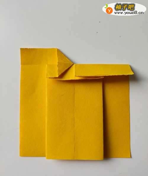2将上一步折出的折痕向中线对折对齐。按压平整后,翻面。