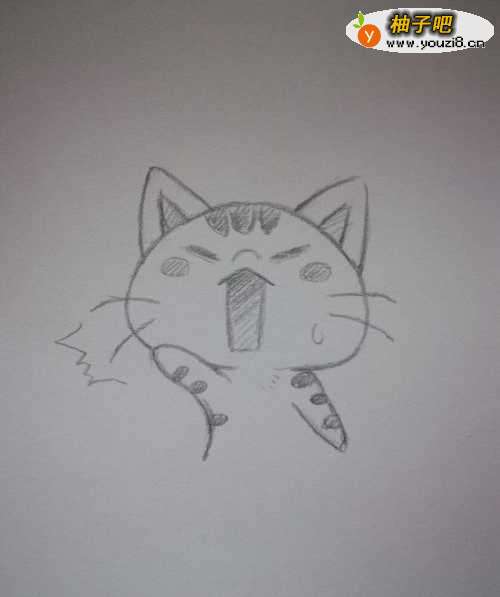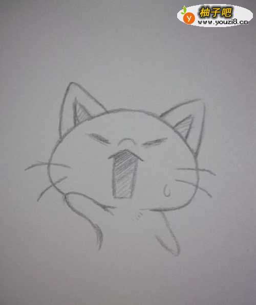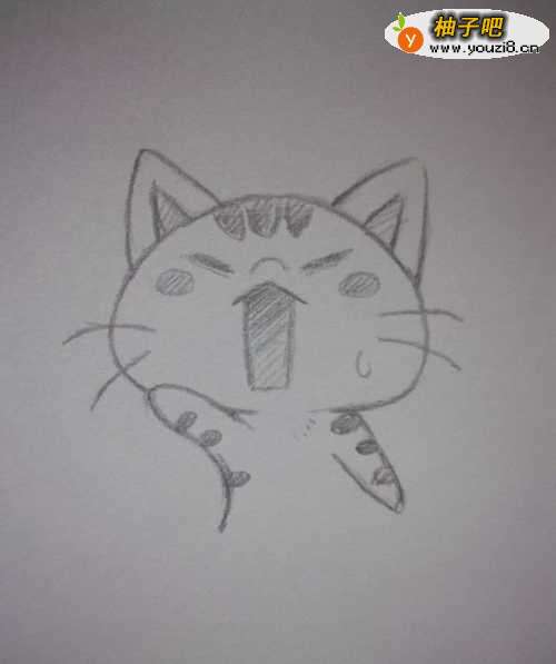 7开始描线,加强线稿,然后在猫咪脸上画一滴汗水。