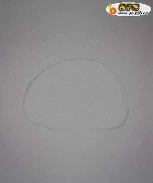 先轻轻地画一个圆酱板,上窄下宽。