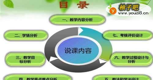 想做好一节课,首先就要了解说课的基本要素,或者说课的基本步骤,要点。说课通常需要说教材,说教程目标,说教法学法,说学情分析,说教程过程,说板书这六个环节。