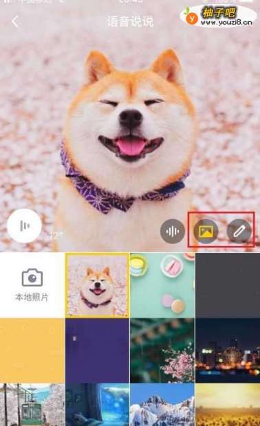 5也能更换语音的图片背景及添加文字效果,但要选择点击”相关“的按钮。