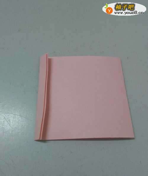3将双层彩纸的左侧向右折一个窄窄的小边。