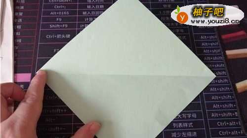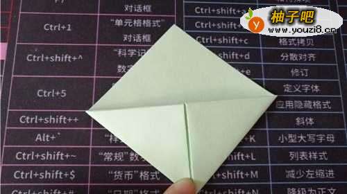 首先,把彩纸的两角对折,如下图所示。