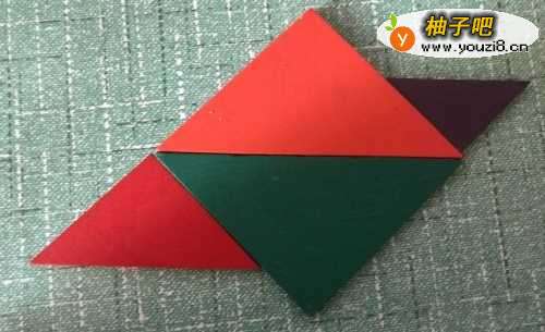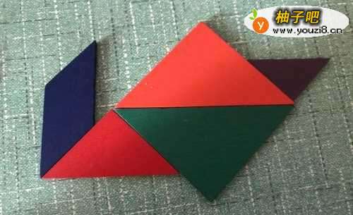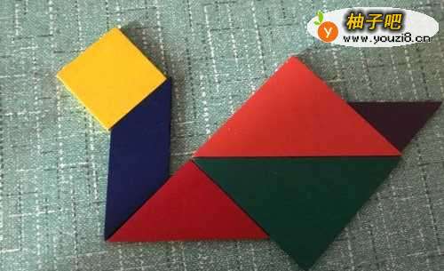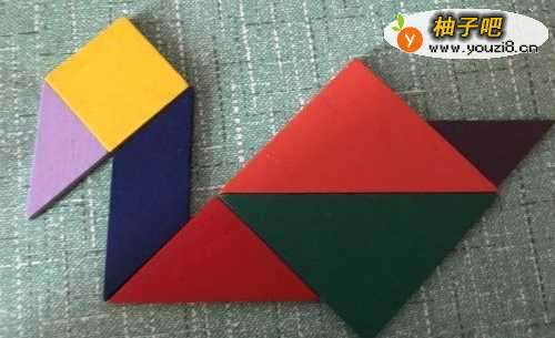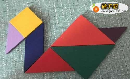 3再放入一个大三角形,正好和另一个大三角形组成了鹅的身体。