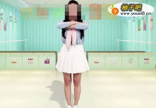 准备姿势站好,1234的时候向左边造型,2234收回来,3234的时候向右边造型,4234的时候收回来,然后晃头一个半拍 12345678