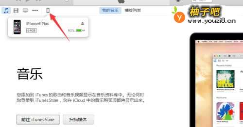 在电脑上开启已经安装好的iTunes,然后用数据线将iPhone手机连接到电脑的USB接口上面,连接成功之后直接进入到iTunes首页,点击页面上方的iPhone手机图标