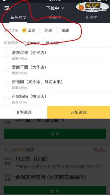 2在主界面新任务那里能看到有有外卖和跑腿两种订单,外卖订单单价较低,但是外卖订单量比较多,我通常就是两种酌情去接,最重点是顺路!顺路!顺路!超时不仅扣钱也影响到等级评定。