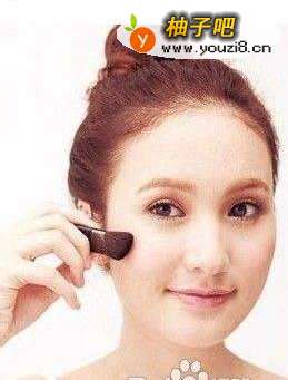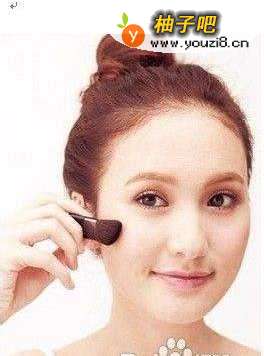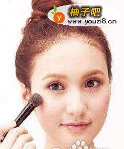 4步骤4 设置渐变色的腮红,用最深的粉色刷到颧骨上,然后再在周围扫相近的浅色,制造健康红色。