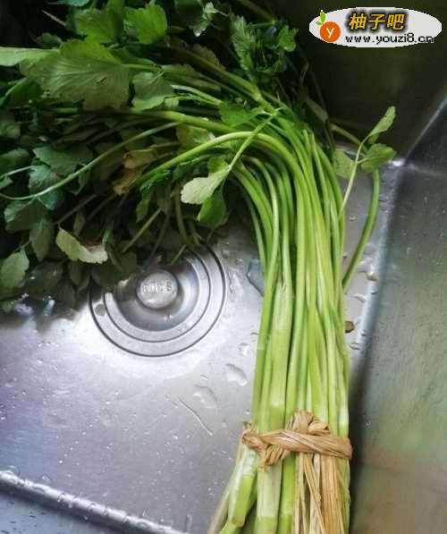 芹菜买回来之后,要先把前面的叶子去掉,要不然有苦味。