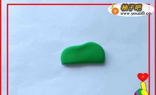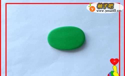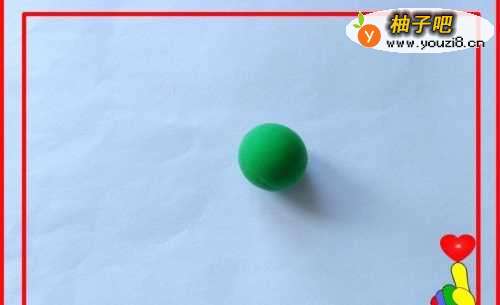 取出绿色彩泥适量,滚搓成一个小圆球。