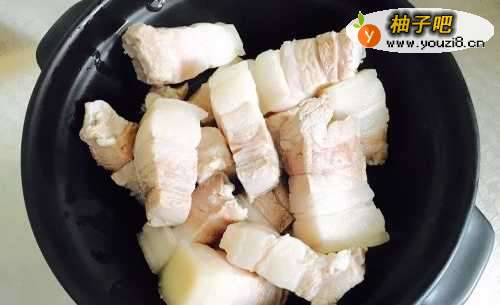 首先把买回来的五花肉清洗干净,切成块状,大小可根据自己喜好决定。把切好的五花肉与冷水一起下锅,然后开大火煮开,焯水,起到去腥的目的。