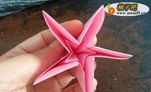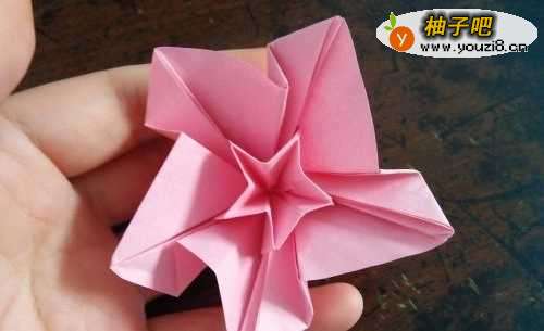 今天所折的五瓣花,需要的纸比较大,因为小了折出来的折痕不容易清晰地展现出来。过程稍微的有些复杂,不过就是重复的地方多了些,还是比较容易学的。