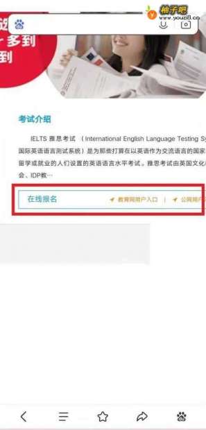 3雅思页面,点击选择右下角在线报名。