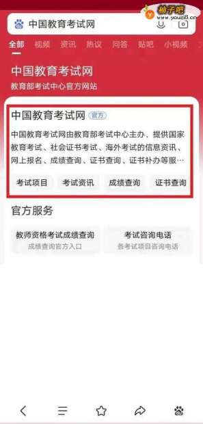 百度查看器页面,搜索文字中国教育考试网。