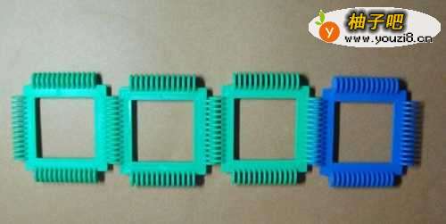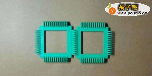 2这里先拼装美慢慢爬的毛毛虫的身体部分。由两个正方形积木所组成。摆放的位置,如下图所示。