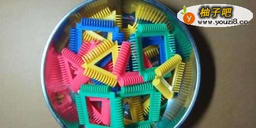 把所需要的积木全部倒在一个铁盘子里,这样在找积木零件时会比较方便。而且孩子在盘子里做积木,如果不小心没拼好时,积木也不会掉在地上造成损坏或者丢失。