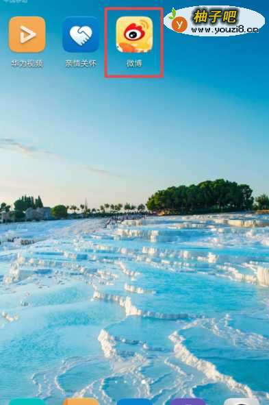 首先,我们启用我们的手机,然后我们点击新浪微博;