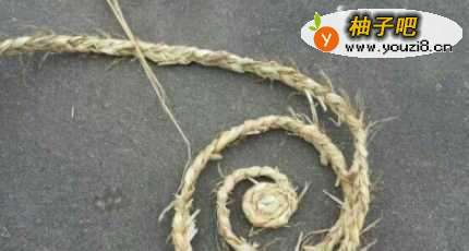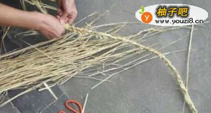 将稻草分三股织成辫子。