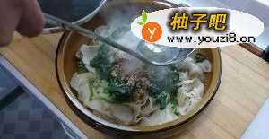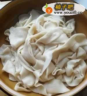 4水开下面!不要拉的太薄,稍微厚实点口感好!煮好的面捞出过凉水!控干水分!装盆!