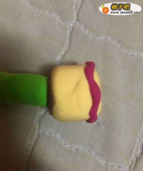 3在拿出红色的彩泥揉成长条,围上一圈。