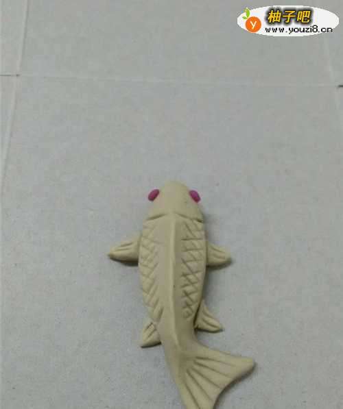 用面搓两个细细的长条,粘在鱼的下方,当作鱼鳍。