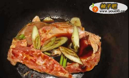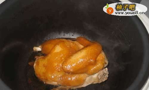 6倒入1配好的酱汁;按煮饭键,开后转为保温键焖煮约15分钟。