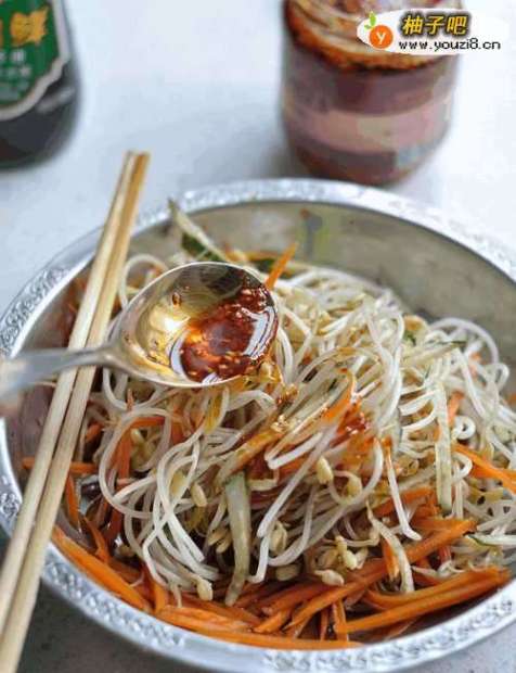 7最后调入适量的油泼辣椒,拌匀即可装盘。