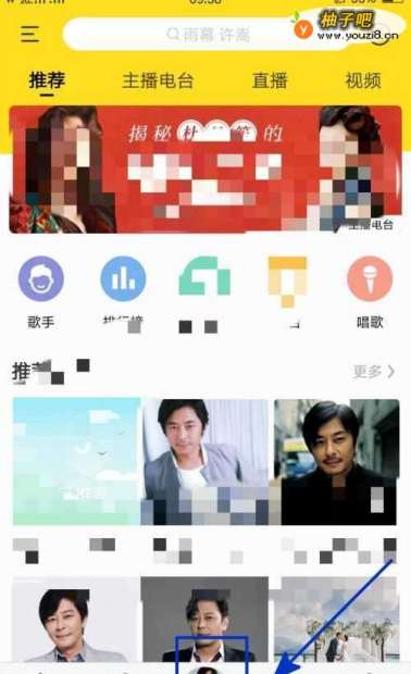 在启用的酷我音乐应用首页中点击中间的播放键;