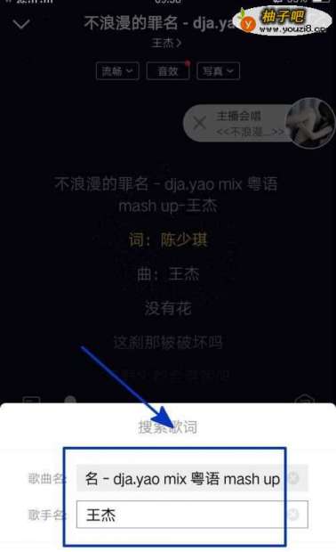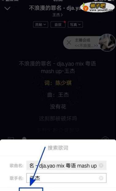 5紧接着,在出现的搜索歌词文本框搜索框中编辑好要搜索的内容;