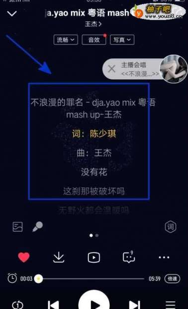 3我们点击选择播放页面中的歌词使用图标;