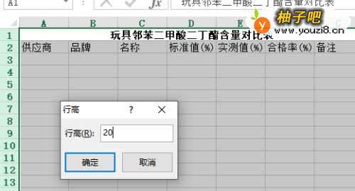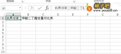 2双击启用表格,在A1单元格里面输入:玩具邻苯二甲酸二丁酯含量对比表。