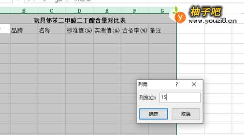 6选定内容列,右键点击选择下拉菜单中的列宽,使用列宽为15。