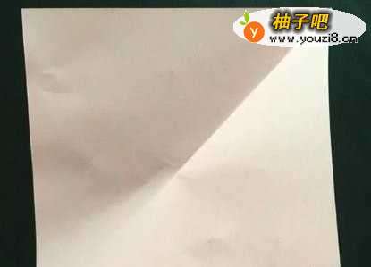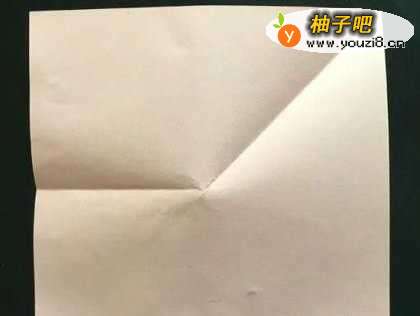 准备一张正方形彩纸,沿着对角线方向对折,这里不能折到底