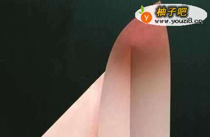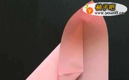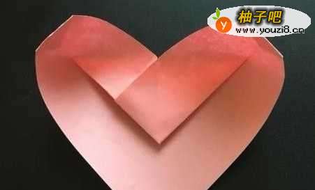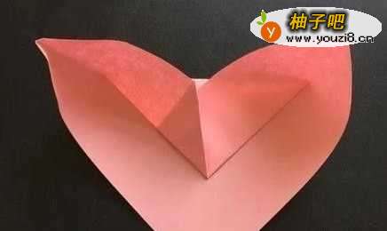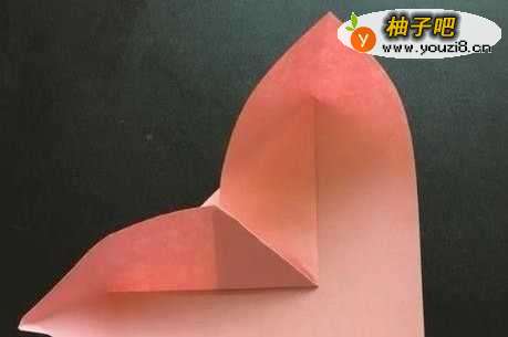 8将爱心中间的折纸抽出来,中间的直角对折成45度尖角。