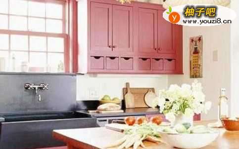 第一部分中介绍的白色系装修是小户型厨房中的经典,不过,也不要一口否决了色彩在小户型厨房中的应用。红色、黄色、蓝色等明亮活泼的色彩也是小户型厨房装修的好帮手,它们的加入能让小空间给人眼前一亮的效果!